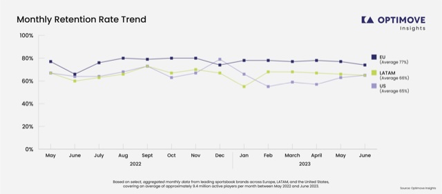En Europa, las apuestas de fútbol están profundamente arraigadas. El Mundial refuerza los hábitos existentes en lugar de crear nuevos. Los nuevos apostadores captados durante el torneo tienen más probabilidades de mantenerse activos porque el fútbol ya ocupa un lugar central en el calendario de apuestas. La retención se mantiene relativamente estable antes, durante y después del evento.