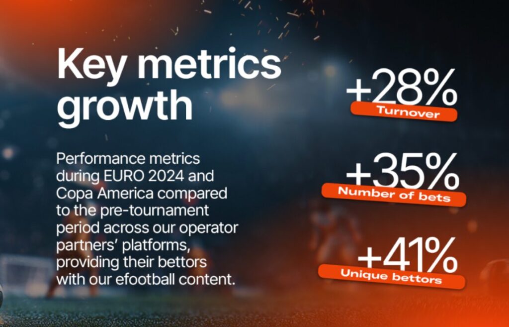 Existe la idea errónea de que el contenido de esports sustituye a las apuestas tradicionales. Nuestros datos del Informe de la EURO 2024 y la Copa América demuestran lo contrario: los esports dinámicos pueden potenciar la participación en el fútbol. Durante estos grandes torneos, BETER registró un aumento del 28 % en el volumen de apuestas de eFútbol en ESportsBattle y un incremento del 41 % en apostadores únicos.