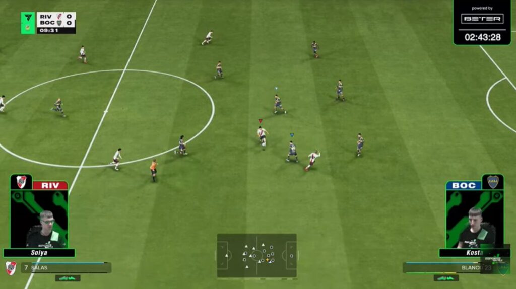 - Previa al partido (la preparación): Utilizar contenido de esports o torneos que reflejen los partidos de fútbol reales del día para permitir a los aficionados «anticipar» los resultados. Esto capta el tráfico temprano y genera anticipación horas antes del inicio del partido, lo que permite a los aficionados interactuar con un formato que refleja la narrativa real del torneo antes que los profesionales.