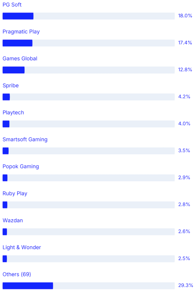 - PG Soft and Pragmatic Play slipped to 2nd, maintaining its position but down 711 points week-over-week, with the PG Soft Fortune games and Pragmatic‘s Spaceman still the strong performers.