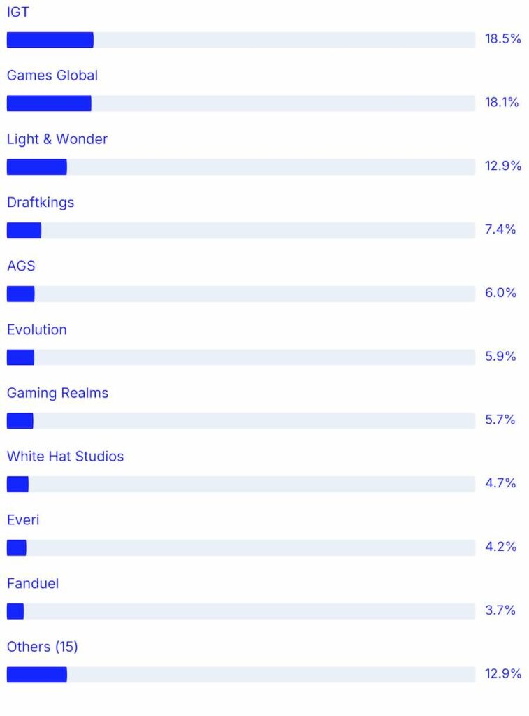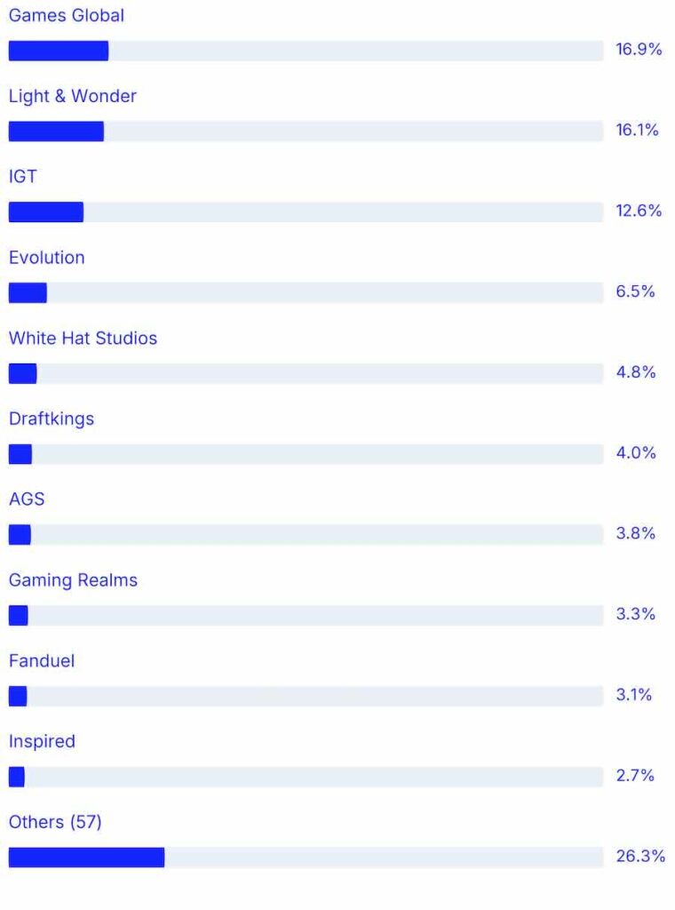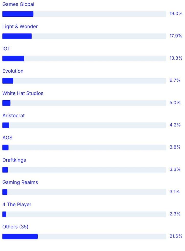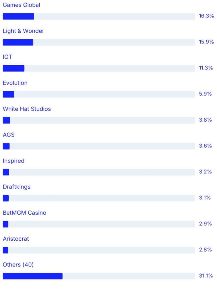 Where studios have more than one studio brand we collapse all of those numbers under the main studio. For example Light & Wonder statistics contains all Elk and Lightning Box games.