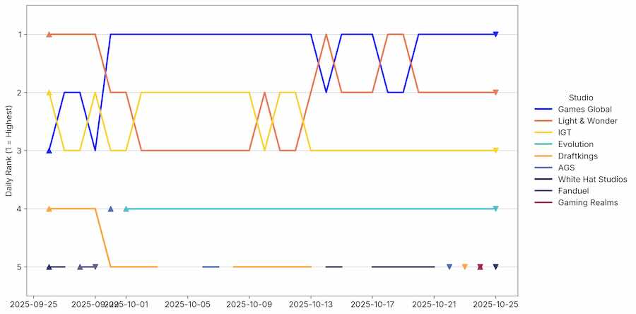 In the latest iGaming Weekly Studio Rankings for the US, the competition remains strong as studios jockey for position. The top three positions in particular remain fiercely contested. The margins are thinner than even.